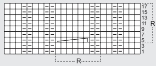 Bij 3 cm totale lengte, breinaalden wisselen voor nr. 4 ½ en verderbreien in kabelsteek volgens grafiek A.